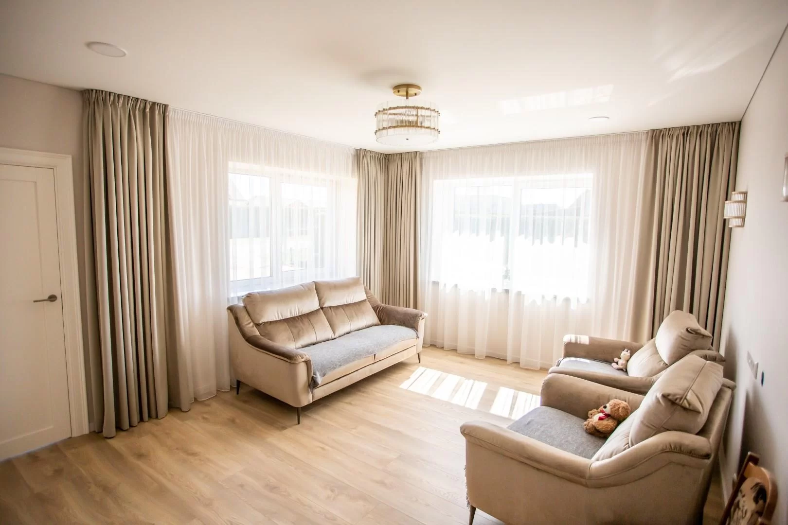 Šio pilno namo atnaujinimo metu siekėme sujungti modernų dizainą su praktiškais sprendimais. Klientui buvo svarbu turėti šviesias, funkcionalias erdves, kuriose būtų patogu gyventi ir priimti svečius.